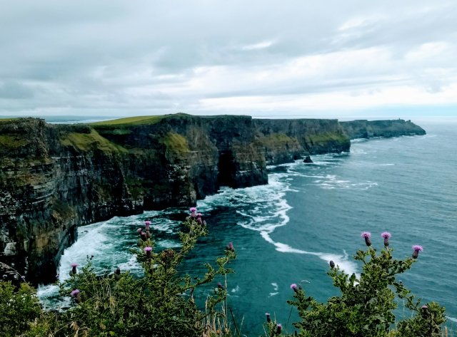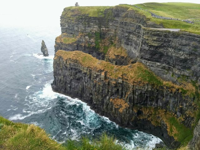 The main destination: the cliffs of Moher. I try not to over use superlatives, but this coastline deserves them. It is majestic and truly stunning. The cliffs rise 702 feet from the ocean below. The angles of the cliffs let you admire them from land.