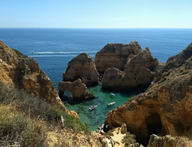 Since the caves were only accessible by sea, I picked an easier destination for our next day: Ponte de Piedade. This hiking trail was just outside of town with a colorful cliff walk to yet another perfect beach.