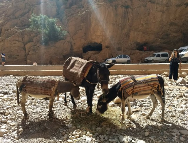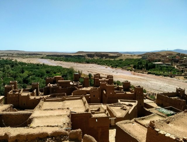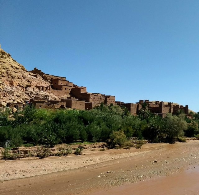 Riding a camel through the Sahara Desert has been a dream of mine for at least two weeks now. I didn’t think we could handle six full days in Marrakech, so I booked us a three-day tour out to the Sahara Desert near the border with Algeria. Since it is 600 km drive to get there, the tour included stops at Kasbahs (mud brick fortress with 40-50 homes inside), a movie studio, and a Berber village.