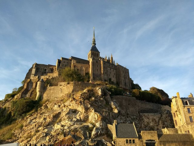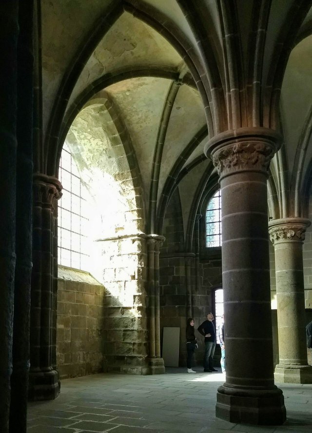 We spent an entire day at Mont Saint Michelle. It was lovely, but my expectations were so high that it was hard for it to live up to all of them. For one thing, the surrounding sky was not pink and purple. The Abbey has also been used as a war fortress that was never breached and as a prison. Every grand building in France seems to have been used as a prison at some point.