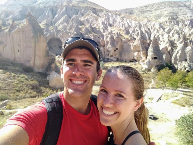Göreme is within Aaron and Valarie walking distance of most the sights (+/-4 miles each way). Day one we hiked through the national park to Paşabağlari and Zelve. These valleys had houses and churches carved into the hoodoos. Some of the houses were only accessible by ladder.