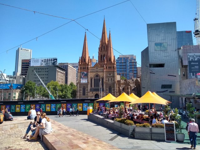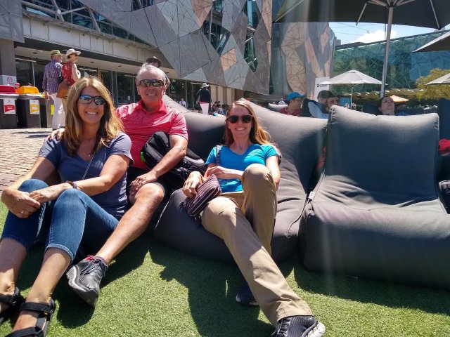 The Australian Open (tennis) is playing now too. The public squares have lounge chairs and umbrellas set up with broadcasts on large screens.