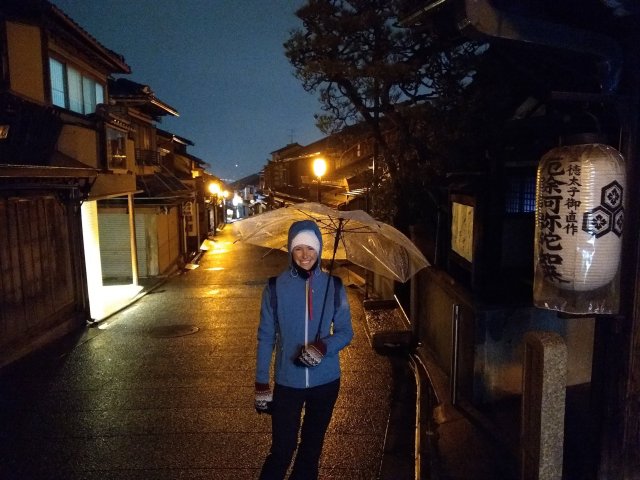 We got off the train in Kyoto and it was snowing–our summers really are behind us. We stayed in the old geisha district of Gion. It is easy to imagine samurais and Geishas walking around the area because it is well preserved and because we saw tons of Geishas and samurais walking around. They don’t do it for tourists or for tips though, they do it for their own photo sessions.