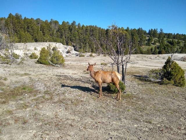 On one hike an elk took a disklike to Aaron. We tried to keep our distance, but it kept charging at Aaron whenever he moved. A nearby ranger came over and scolded the elk and threw pebbles at it while we made our escape. Apparently it had a calf nearby and it sensed Aaron’s profession.