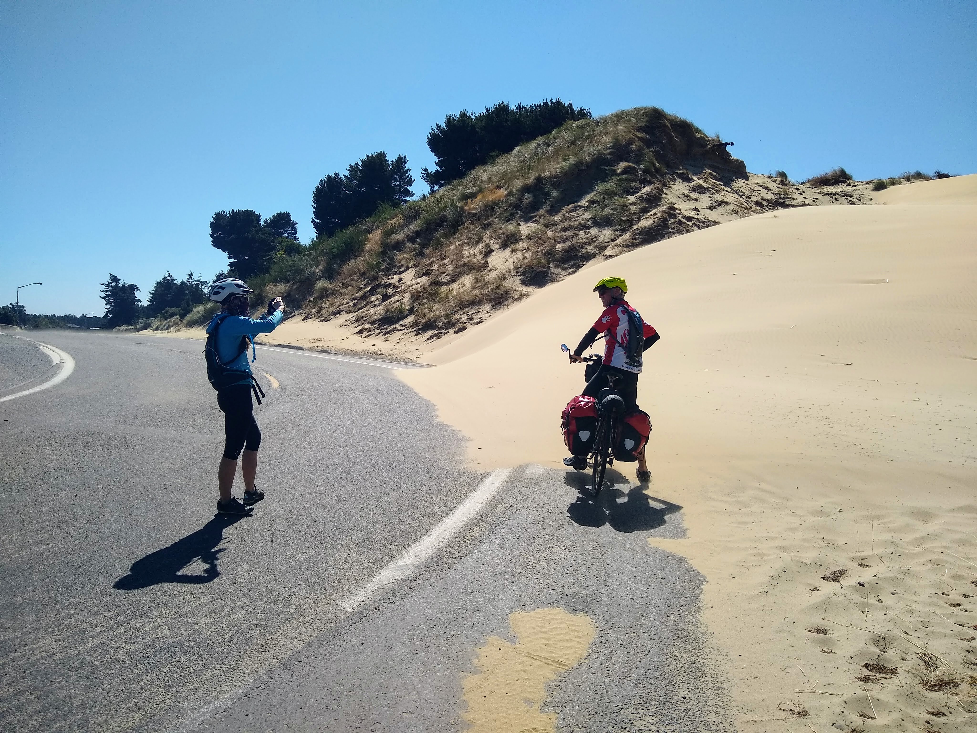 We went through Florence and saw the lighthouse and the sand dunes. Some of our pictures require a bit of creative staging.