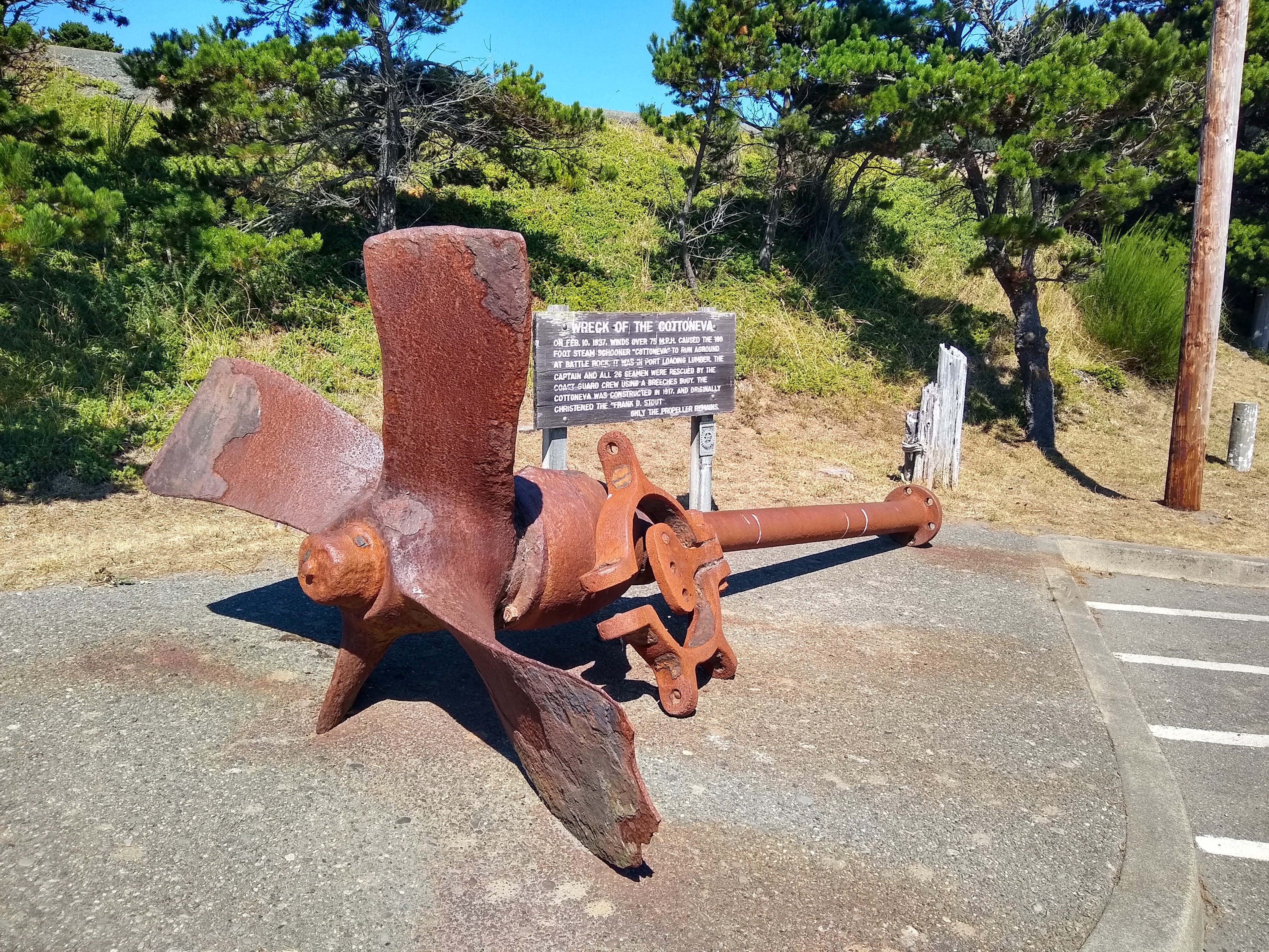 Sunset Bay was one of our favorite campgrounds. It had a sheltered beach a short walk from camp and a pleasantly melodious fog horn that carries from Cape Arago lighthouse. We had tortilla wraps for dinner with wine, Cheetos and pie. We must have eaten 10 bags of chips on this trip.