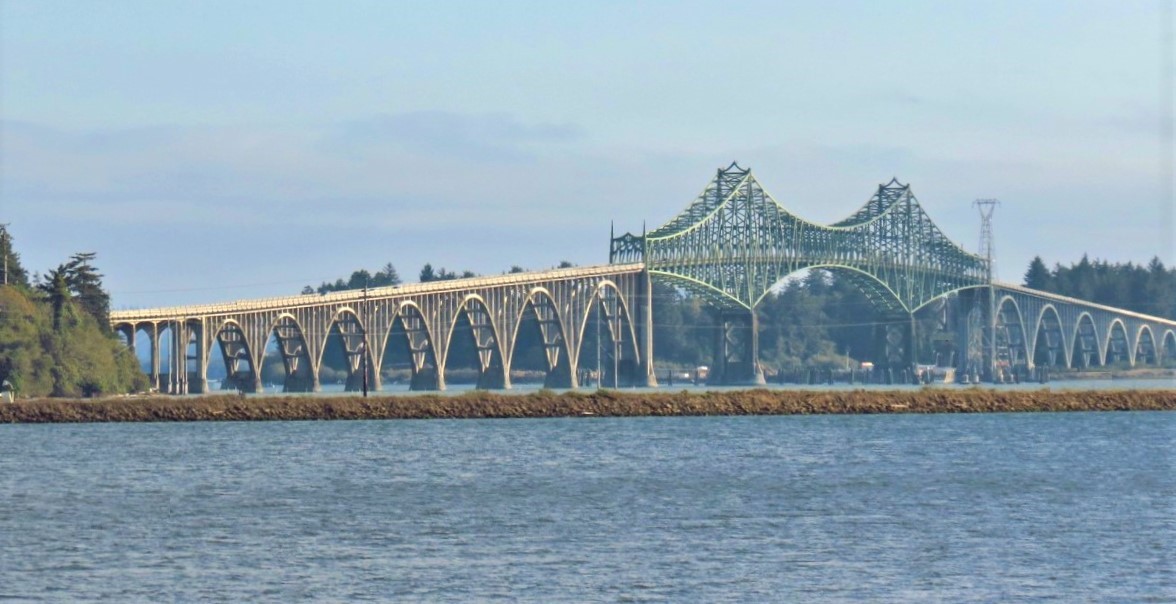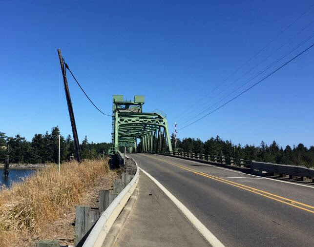 As we approached Coos Bay, I overtook another cyclist who was solo riding from Seattle to San Francisco. We talked for a few minutes and decided to caravan across the next bridge together. Conde McCullough Memorial Bridge is a mile long with no bike lane or shoulder. It does have flashing lights to alert drivers to biker presence, but it is the type of bridge that you cross in a group and ride as hard and as fast as possible.