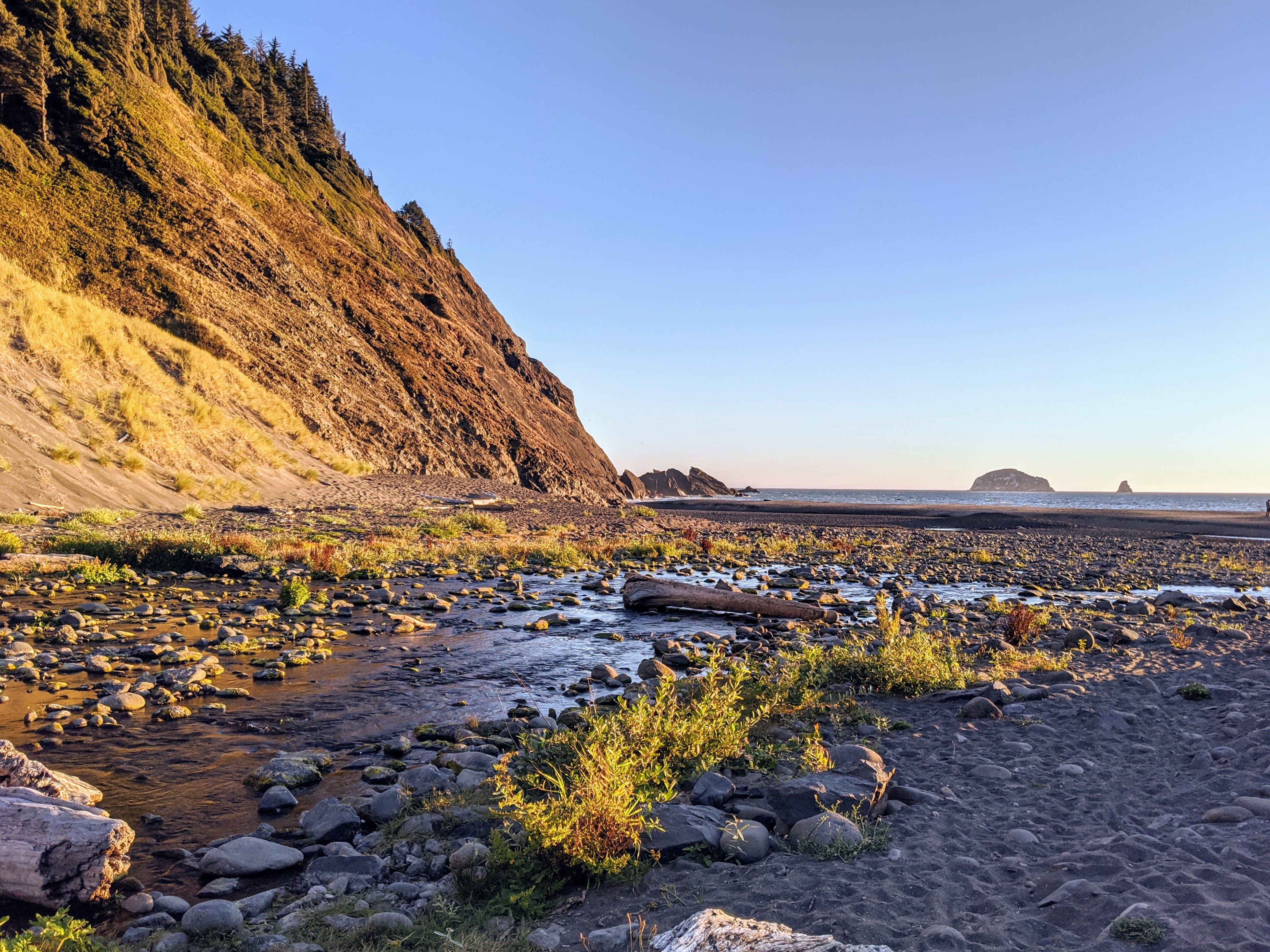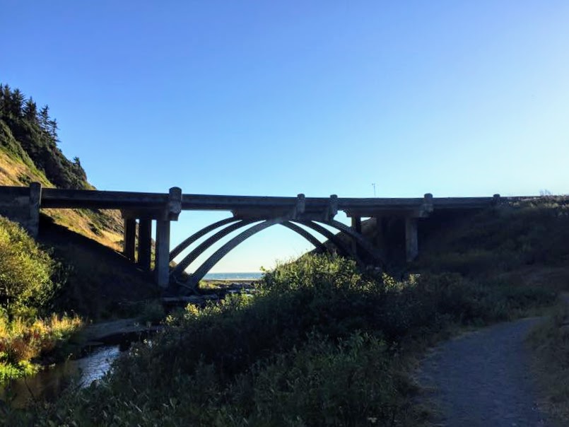 Humbug Mountain had a little creek where we iced our sore legs and rinsed off that day’s dirt. The path from the campground took us under the highway and out to a pretty beach. The only downside to the campground was the highway noise. When trucks drove by in the wee hours, it sounded like they were only feet away from our tents.